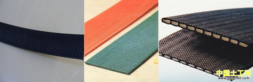 經擠壓拉伸或再加筋制成的條帶抗拉材料,或者以聚酯纖維為芯材外覆聚乙烯保護鞘形成的條帶抗拉材料。包括塑料土工帶、鋼塑土工帶、聚酯土工帶等。