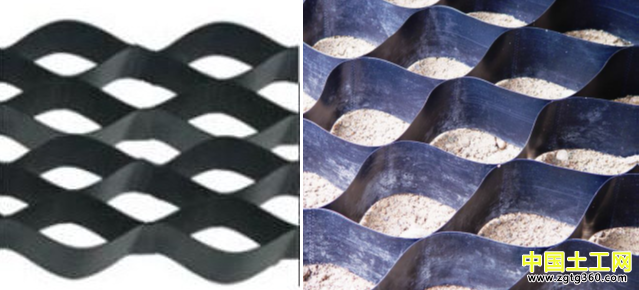 (a) 單向拉伸土工格柵 (b) 雙向拉伸土工格柵