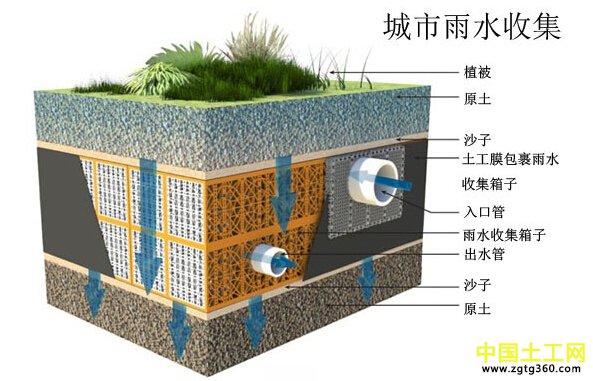 雨水蓄水模塊采用聚丙烯材料制作成不同規格尺寸的網格狀平板,通過拼裝成模塊化尺寸的箱體,將每一個箱體碼放成為連續的雨水“矩陣”池。因為其網格化透空的結構,材料的結構占用空間不到5%,即模塊的蓄水空間達到95%以上,雨水可以在其中自由交換流動。雨水蓄水模塊直接安裝在地面以下,不占用地表使用空間,隱蔽性好,可阻隔陽光照射,且模塊材料可靠,可使雨水長期儲存而不發生變質。模塊組合式拼裝,簡單靈活且結構堅固,單個模塊承壓能力達30噸/平米,安全可靠。雨水蓄水模塊的安裝工藝流程:基礎處理→無紡布/HDPE土工膜的鋪裝→模塊的定位與碼放→排水板的安裝→管道與模塊的連接→基礎回填及夯實→成品保護。雨水蓄水模塊工作原理:雨水落到地面后,經過初期的截污、棄流處理,截留雨水中較大懸浮物與漂浮物,可以防止水泵、排水管以及其他處理設備堵塞。雨水匯集并儲存到模塊蓄水池后,經過自然沉淀使雨水中的懸浮物質(主要是可沉固體)在重力作用下沉淀,從而雨水分離,使水得到澄清。 儲存在雨水蓄水模塊中的雨水,經過其他雨水處理設備的過濾、消毒后可用于澆灑路面、水景補水,澆灌草坪。也可通過蓄水池將雨水下滲,達到補充地下水資源,改善生態環境的目的。
