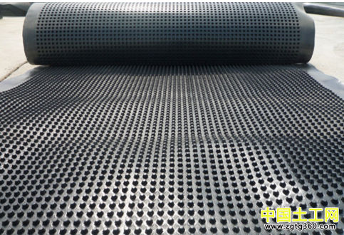 圓錐突臺的頂面膠接一層過濾土工布,以阻止泥土微粒通過,從而避免排水通道阻塞使孔道排水順暢。 傳統的排水方式使用磚石瓦塊作為導濾層、使用較多的鵝卵石或碎石作為濾水層、將水排到指定地點。而用排水板取代鵝卵石濾水層來排水則省時、省力又節能、節省投資、還能降低建筑物的荷載。